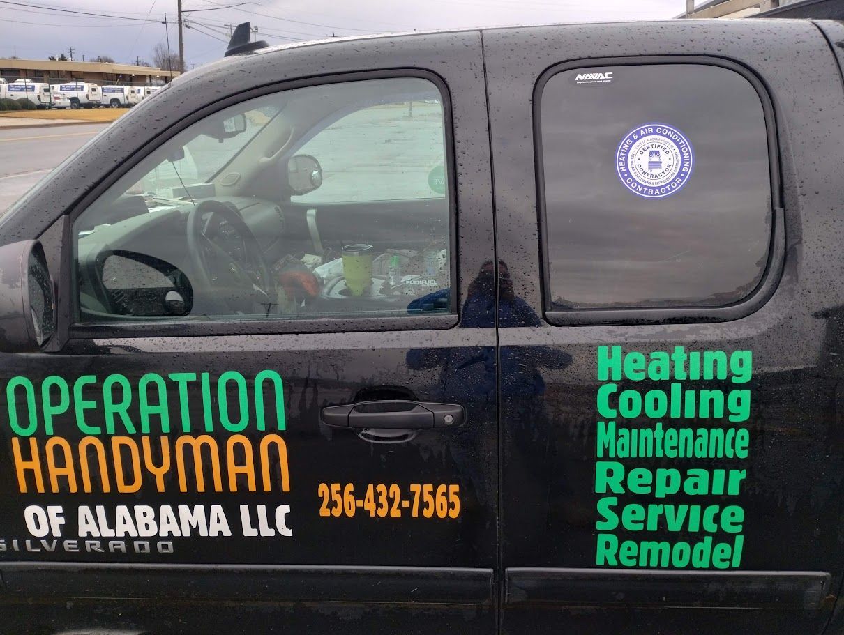 Operation Handyman of Alabama LLC is your source for expert HVAC (Heating/Cooling), home repair, maintenance and handyman services. For several decades, we’ve provided high-quality work and convenient service to thousands of homeowners, and for the last few years included areas like Decatur, Priceville, Hartselle, Smith Lake Area, Cullman, Walker County, Lawrence County, Winston County, and surrounding communities.